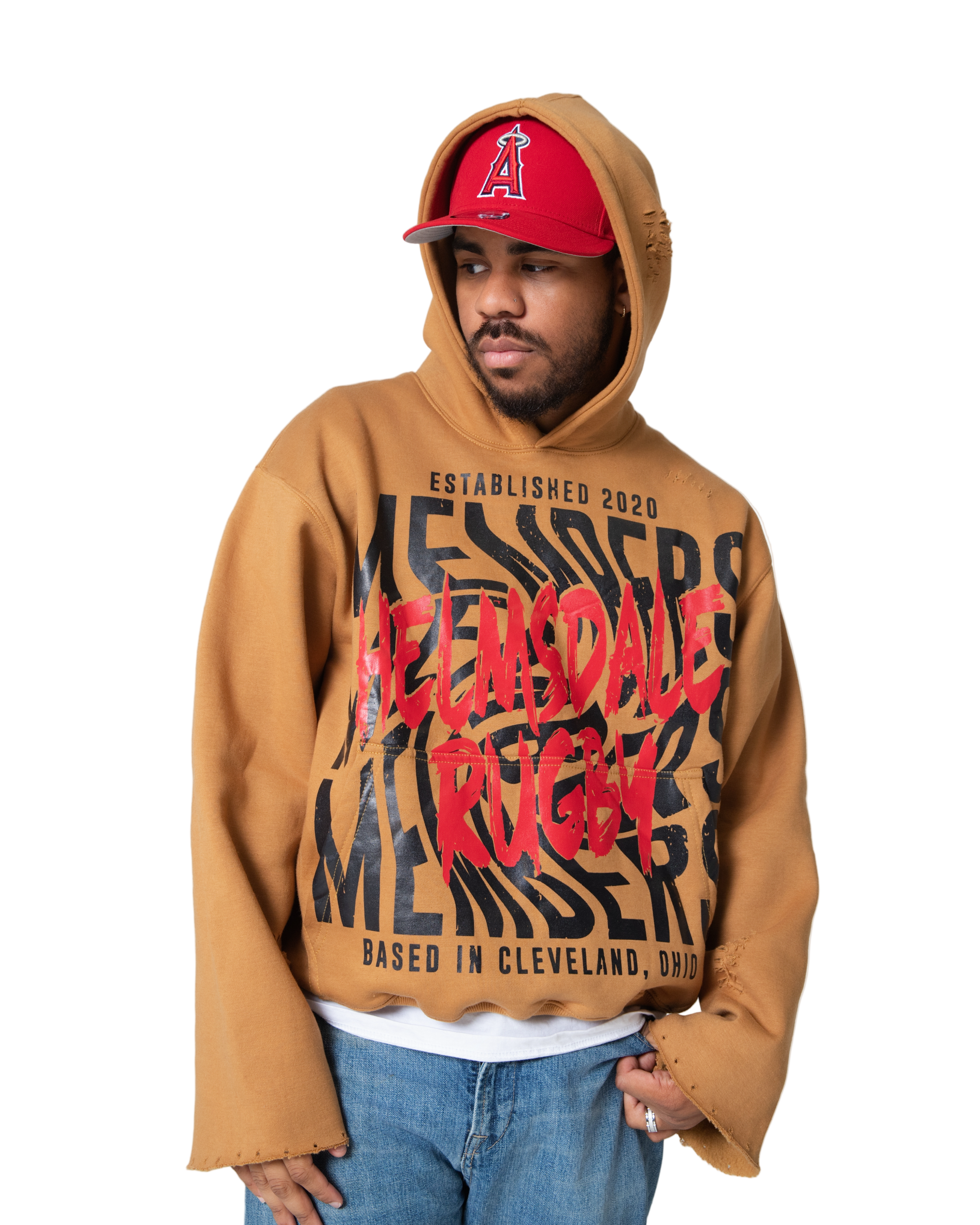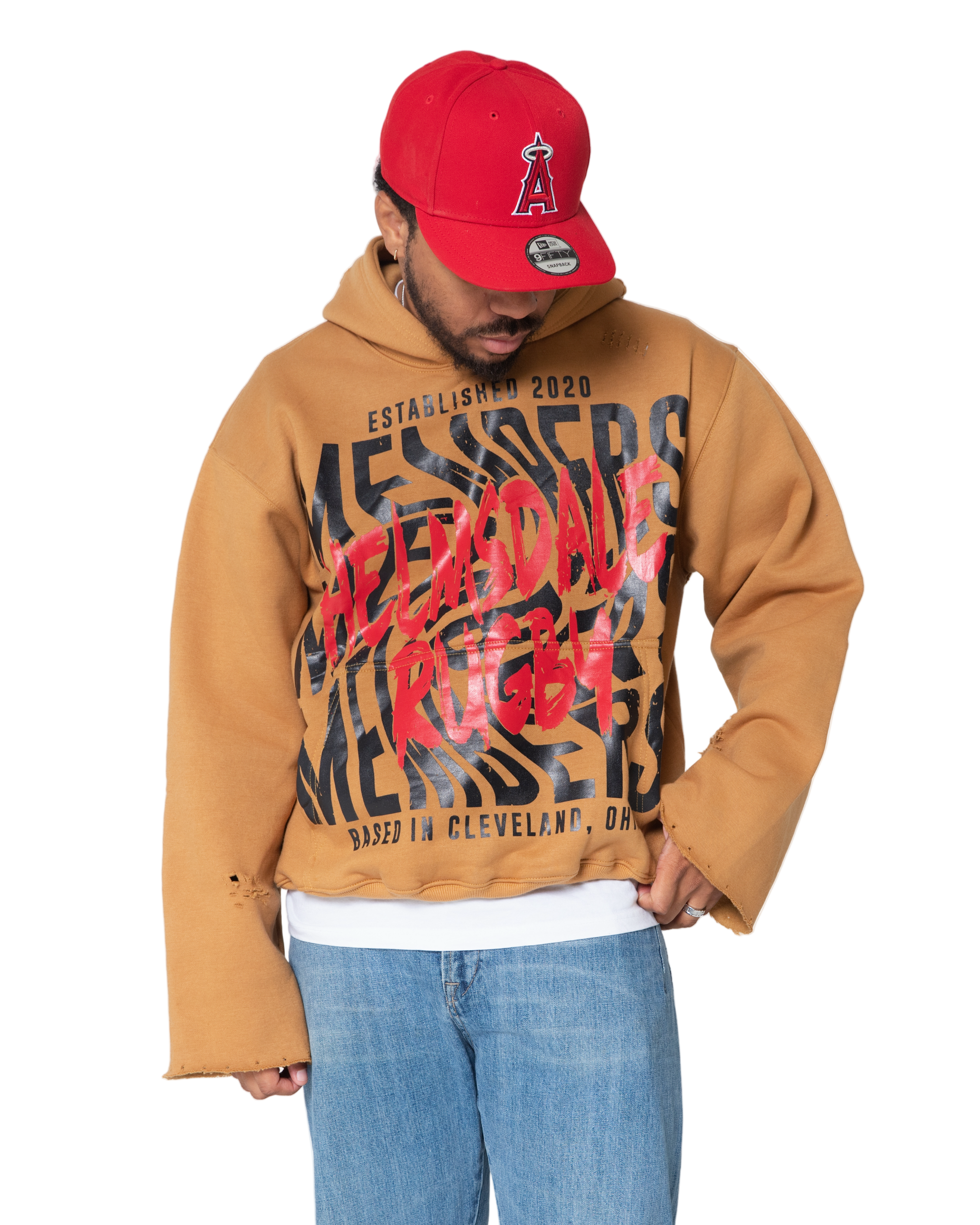 Material: High-quality cotton for a soft and breathable feel. Distressed wide cotton sleeves. Distressed finish.
